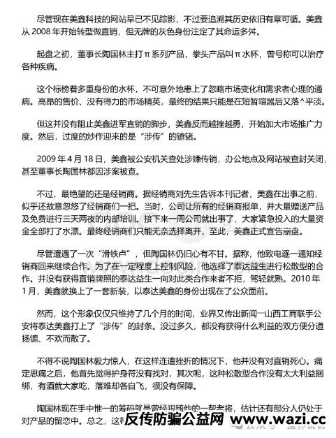 以上内容来源于2009年,之后陶美鑫在操盘罗麦期间,因为是商品加传销模式的原因,还被电视台曝光,并且其推广的产品甚至被曝出,有人吃后至残。因此躲藏几年之后,改名陶国林再次开盘“创业天下”。