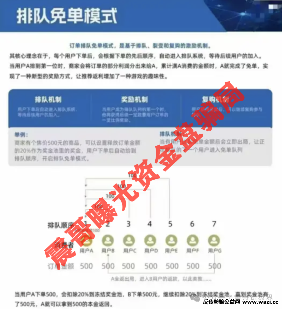 这帮人玩得挺花:花20块钱买袋水,平台抽10块放进返利池,前面排队的人就能拿钱。说白了就是后面人给前面人买单。他们还搞了个2.8万押金租水机的套路,美其名曰"合伙人"。更骚的是把大订单拆成小单插队,还搞什么直推加速、复购加速,这不就是变相传销嘛!