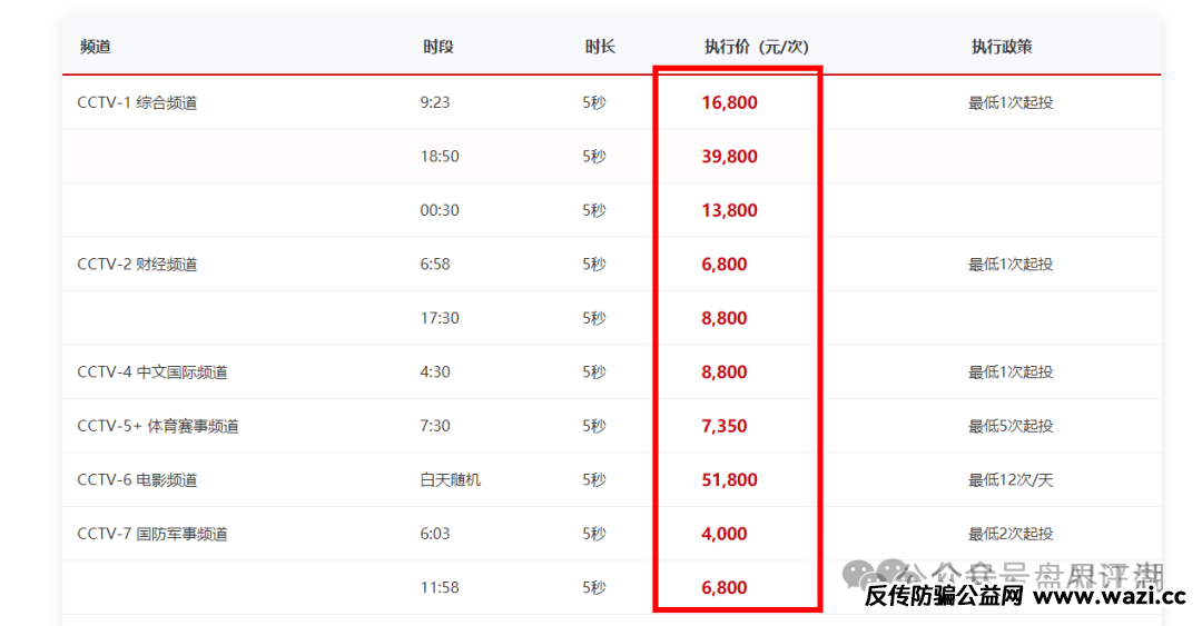 包月更便宜哦。有些深夜的广告,价格更低。上央视根本不是什么稀奇事。要知道上个月暴雷跑路的树拍易购,可是上过央视春晚的!!这仅仅是一个营销方式,项目靠谱和这个一毛钱关系没有,这都是忽悠韭菜的手段而已,目前已经被立案调查中,加上所谓的空壳公司已经人去楼空,崩盘也就是最近了...