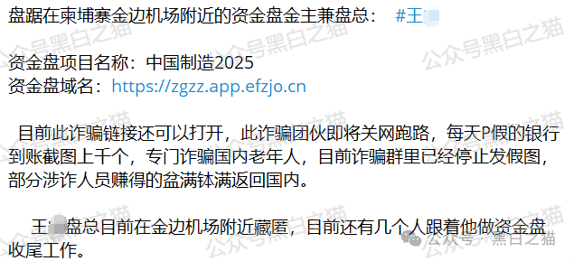 目前“中国制造2025”资金盘已经到了尾声,盘总王某带几个旧部在金边机场附近园区收尾,部分骨干商议准备回国。