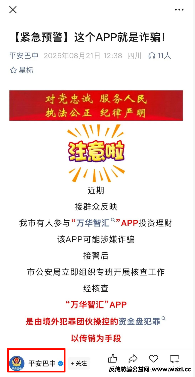 【万华智汇】是分红盘诈骗,警方发布紧急预警,看见远离...