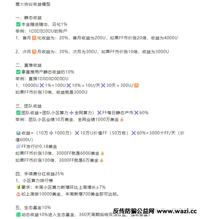 与此同时,项目还设计了动态传销机制:直推奖励10%,团队奖励60%,但要求每周小区新增业绩≥7%,否则触发“熔断”,逼迫用户不断拉人头续命。