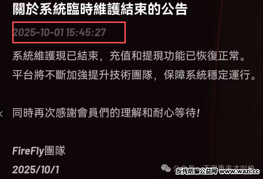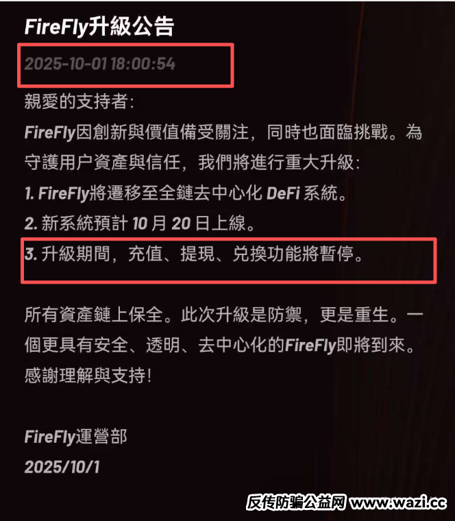 突发暴雷,无法提现!萤火协议FireFly疑似跑路!公告暂停提现20天!
