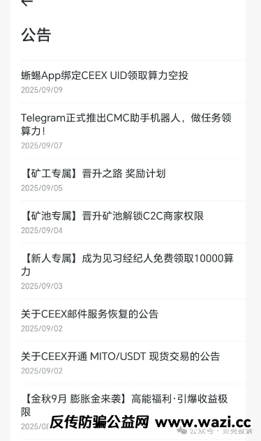 近期不断有粉丝询问这个CEEX平台,还有他的代币CMC,今天我们就再次来说一说吧。这个看似华丽的交易平台,实则为一场即将崩塌的资金盘游戏,无数散户投资者正面临血本无归的风险。