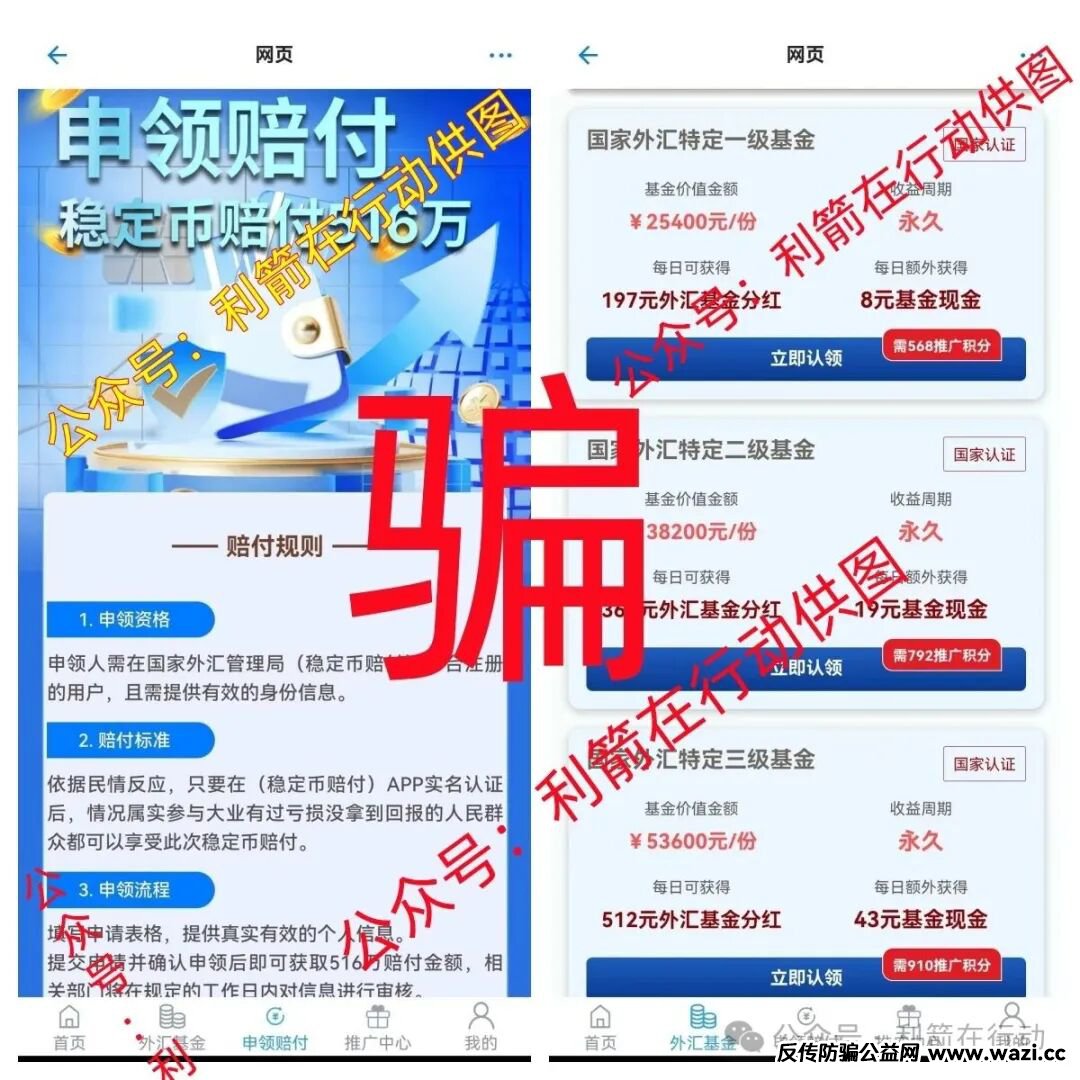 刚刚上线的稳定币赔付APP是网站搭建在境外的诈骗项目,注册后“实名认证”就可以“申领赔付稳定币516万元,拉人来注册还有各种奖励”?这些都是假的,给的是一串串无用的数字而已。
