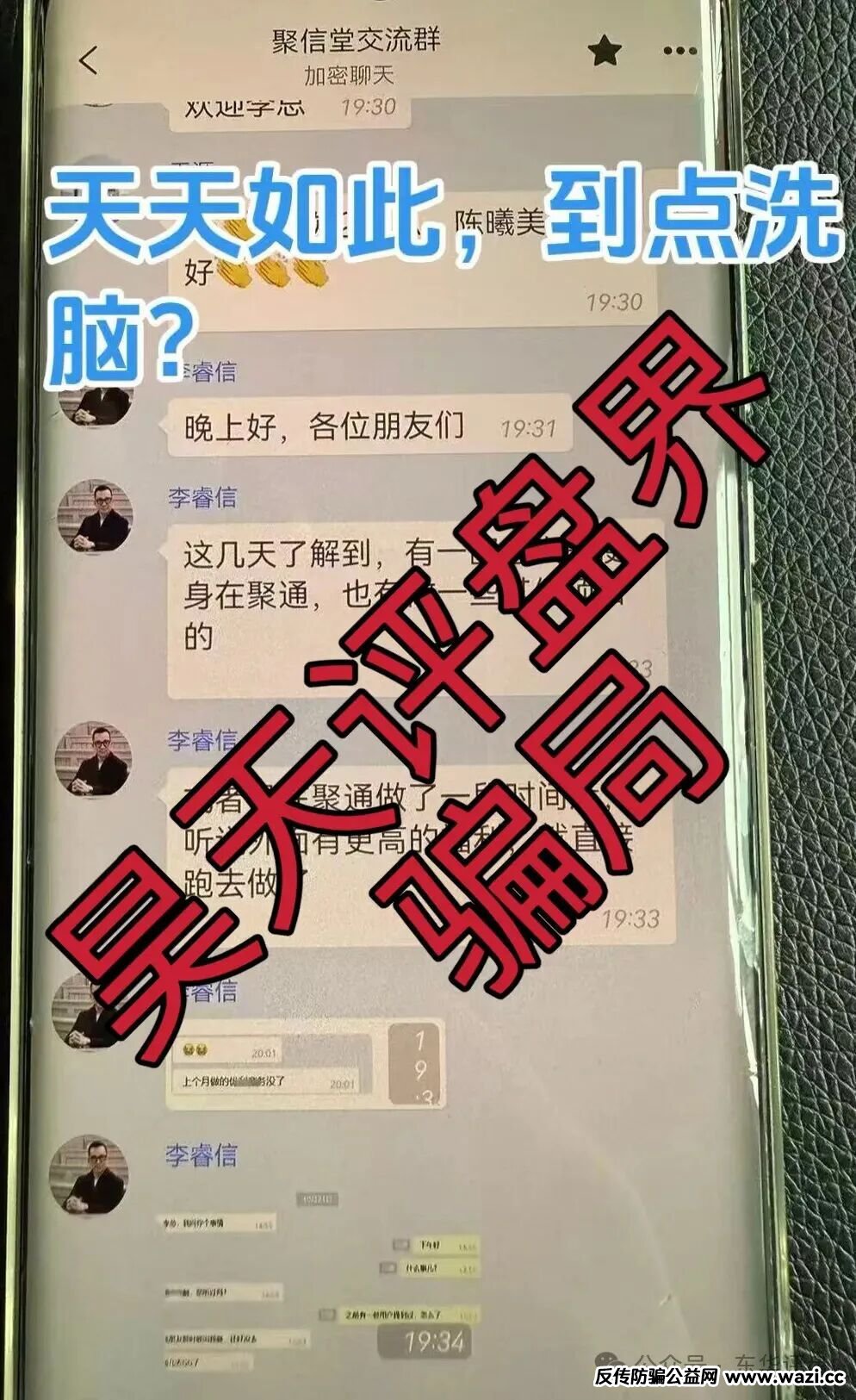 昊天评盘界友情提醒:聚通交易所合约跟单类资金盘骗局,操盘手李睿信圈钱过亿,又大量单割了700多个会员,高度预警,即将崩盘跑路!后面会持续关注!近期知乎,小红书,微博,抖音等app都有冒充昊天的诈骗团伙,记住了我们不做项目,更不会去推广任何项目,除公众号外其他一律不是本人,切勿上当受骗!
