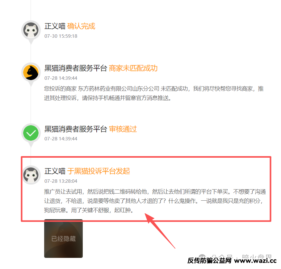警惕“东方药林”销售模式疑似涉传,产品使用效果不好,遭多人投诉到“黑猫投诉!
