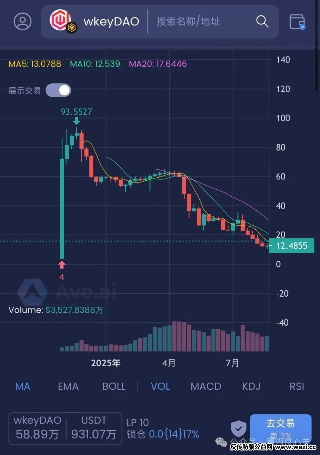 6:Webkey(WkeyDAO)骗局:100万会员被套!从93跌到12,跌幅超100%