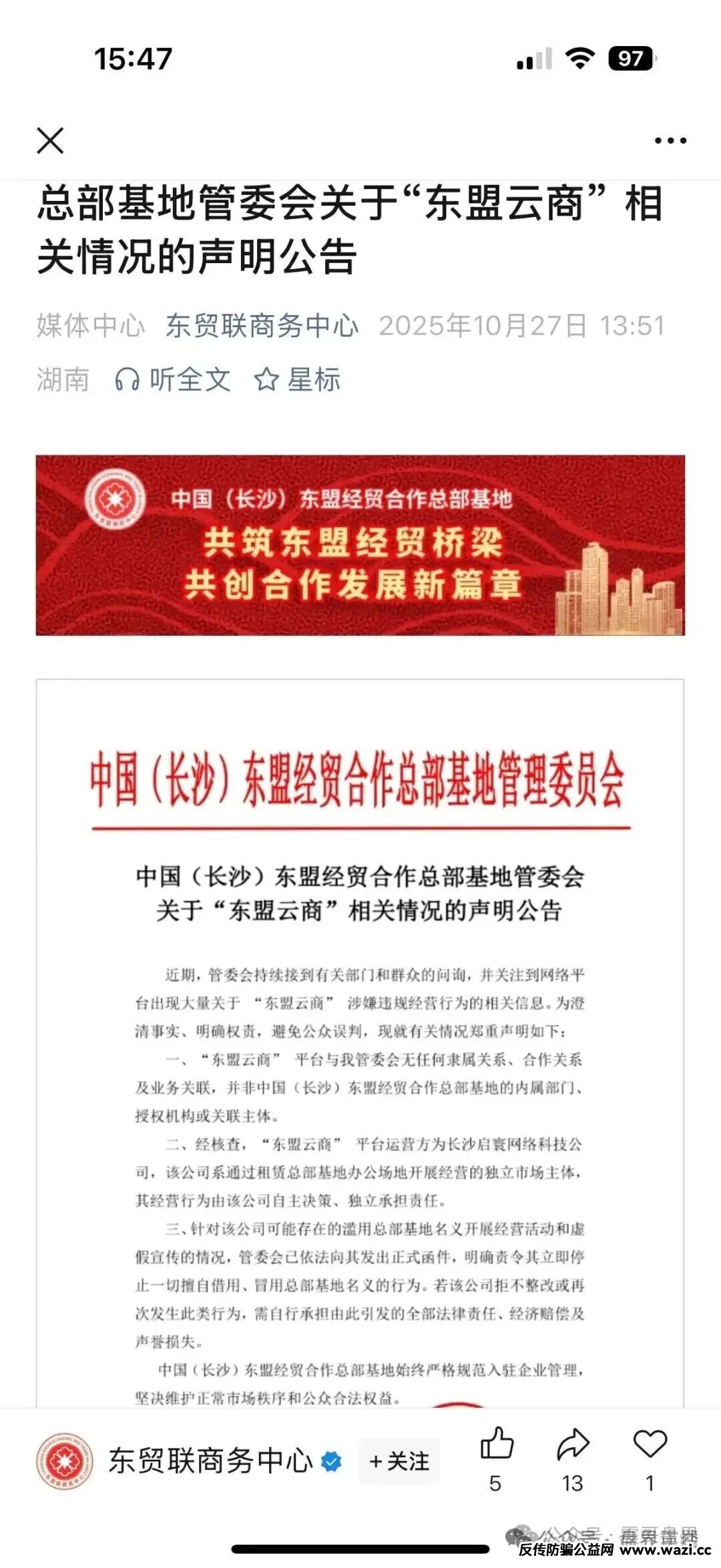 近期不少粉丝爆料了一个叫东盟云商的互助分红类资金盘骗局,十月十六号才开盘。它打着跨境电商的旗号,说自己在做中国和东盟的贸易。包装的其实就是跨境电商平台,10月16日开盘的,和之前...