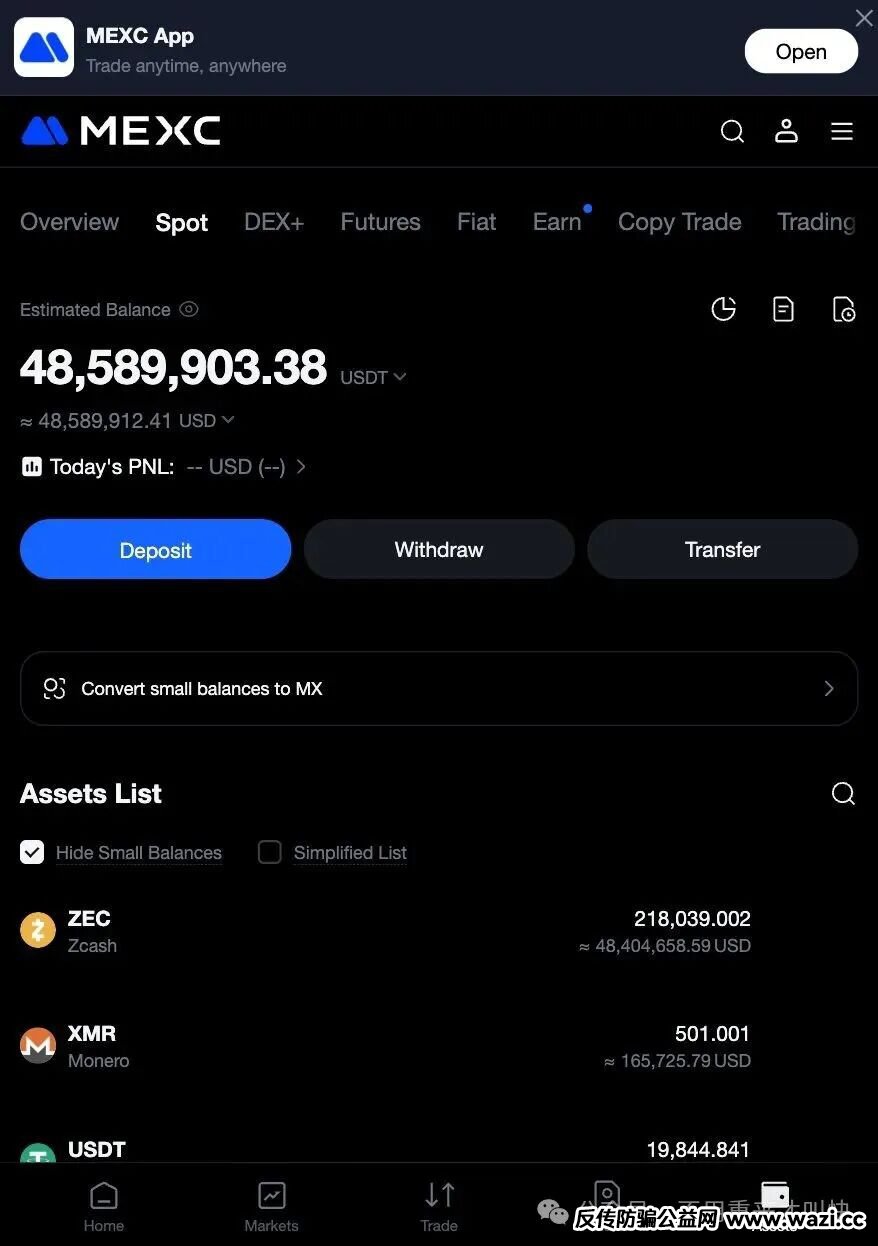 【抹茶MEXC交易所】陷入崩盘危机!爆雷!一用户21.8万枚ZEC被MEXC冻结无法提现,价值超过9000万美金!...