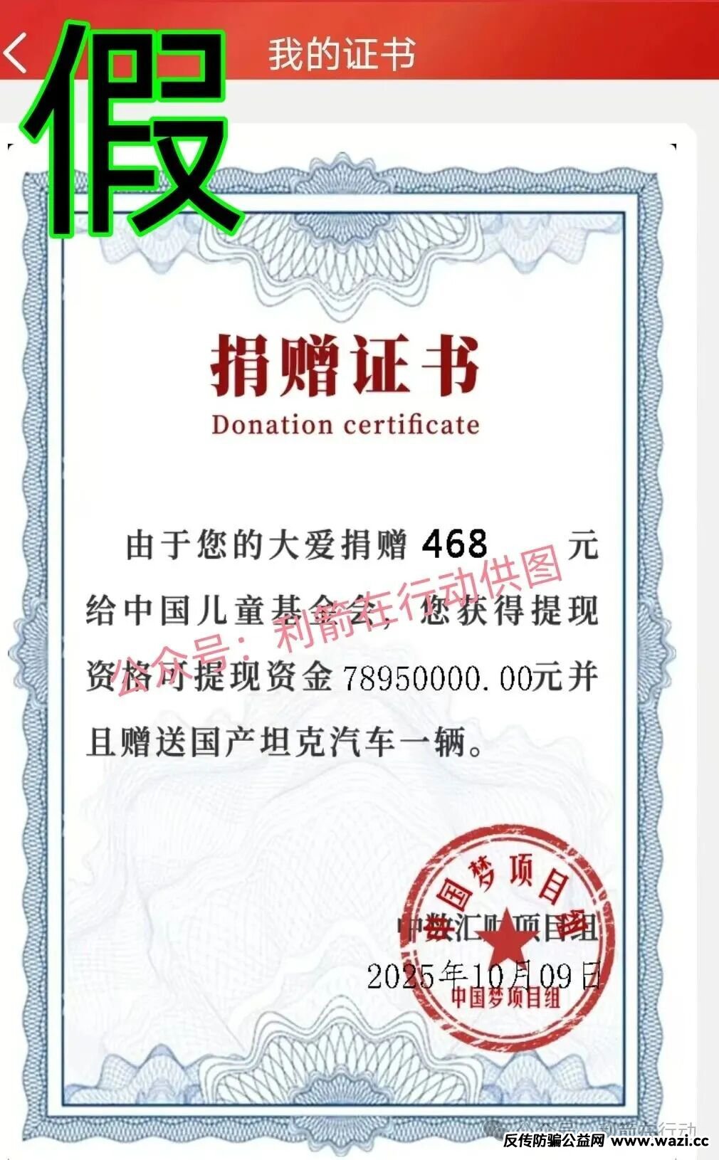 第七步:牛头不对马嘴的“捐赠证书”
