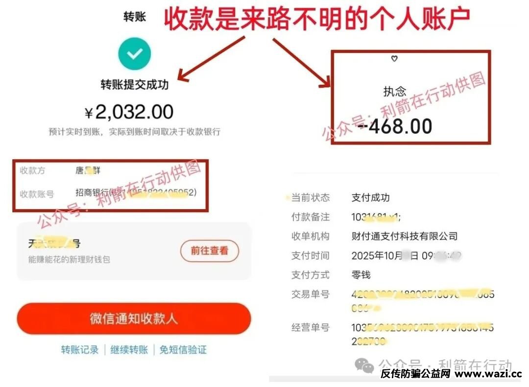 参与者交的468元钱与2032元钱,收款人全是来路不明的个人账户,这与宣传是“国家项目”明显不符。
