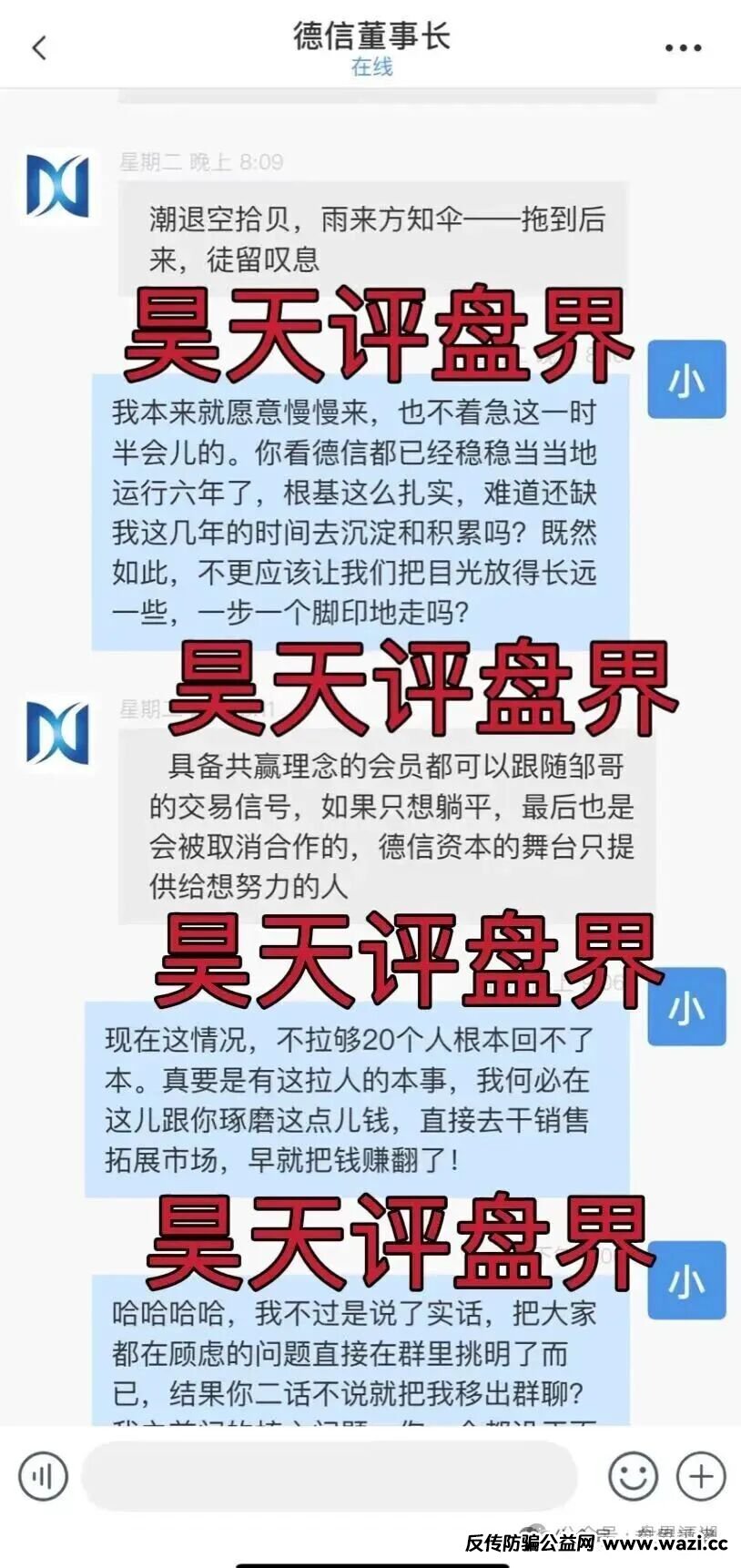 这几天不少粉丝让重楼曝光一下德信资本VT交易所)跟单类资金盘骗局,是鑫康佳骗局换了个名字又来了。开盘没多久就开始大量单割会员了,这伙诈骗团伙也是够畜生的,高度预警,即将崩盘跑路!