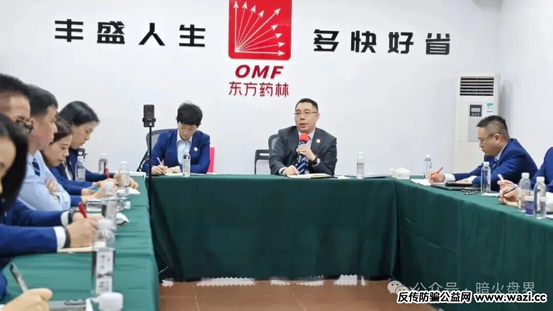 小诺直接扫码添加了广告上的联系人微信。小诺以咨询挂靠业务的身份,和这个人详细聊了几句才知道,这就是为直销企业招揽挂靠公司的广告。经小诺和此人沟通之后得知其合作的直销企业有“海之圣”、“绿活美地”,还有本文曝光的正主“东方药林”。经小诺与此人进一步沟通得知,这三家企业均面向全国招揽挂靠企业和团队。每家公司对挂靠的要求大同小异,差异基本是对月均销售业绩的要求不同。其他的暂且不提,单说东方药林对挂靠公司的销售业绩要求是每月3000万以上。业绩不达标的公司,不会与之合作。看来东方药林这几年的业绩做的不错,小公司根本不入人家的法眼。接着小诺又向此人咨询了几个问题,这个人看小诺对东方药林很上心,就开诚布公的承认了自己是东方药林的员工。并且正在参加东方药林董事长何总主持的公司会议,并且给小诺拍了现场照片,以证实自己的身份。(下面有小诺和这名东方药林员工的通话录音)