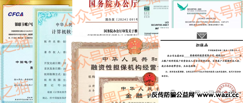 香港创科投资有限公司为了在项目上把包装做更高不可攀,都敢臆造办公厅文件,在文件查询上,从大陆内地的软件著作权,金融许可证,到香港的证监会证券牌照等等全部都是伪造。