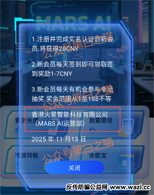 那么今天就顺水顺路,再次摩擦下灰色产业链的某个盘子--MARS AI火星智能科技 01 香港火星智能科技有限公司 香港火星智能科技有限公司 (HONG KONG MARS AI CO., LIMITED)成立於2025.05.12日,APP在2025.06.1...