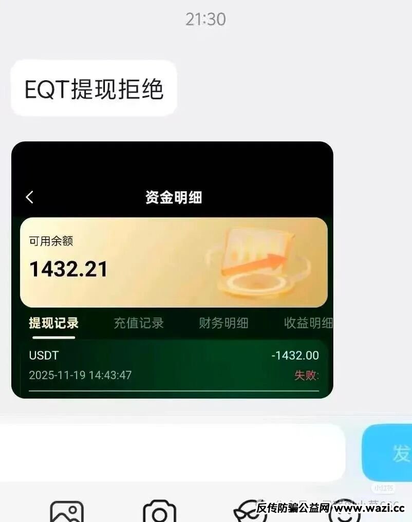 这年头,连诈骗都开始卷复利了。一个叫“EQT财富计划”的平台最近疯狂刷屏,打着“欧洲顶级私募殷拓集团(EQT)中国区项目”的旗号,宣称日化收益1.6%,算下来月收益直接飙到50%以上,年化轻松破180%。群里天天晒“到账截图”,客服一口一个“亲,放心投”,连PPT都做得像模像样——可真相是:你每转一笔钱,离血本无归就更近一步。