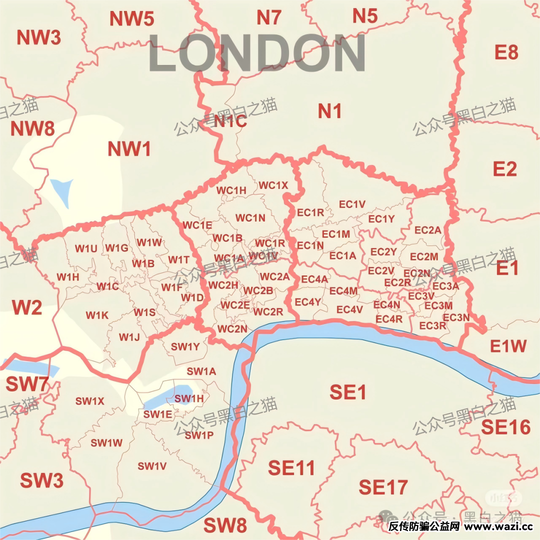 经过小编所熟悉的英国网友辨认,直接判定是伪造地名,并说出判断依据并发了最新伦敦的邮政编码图。