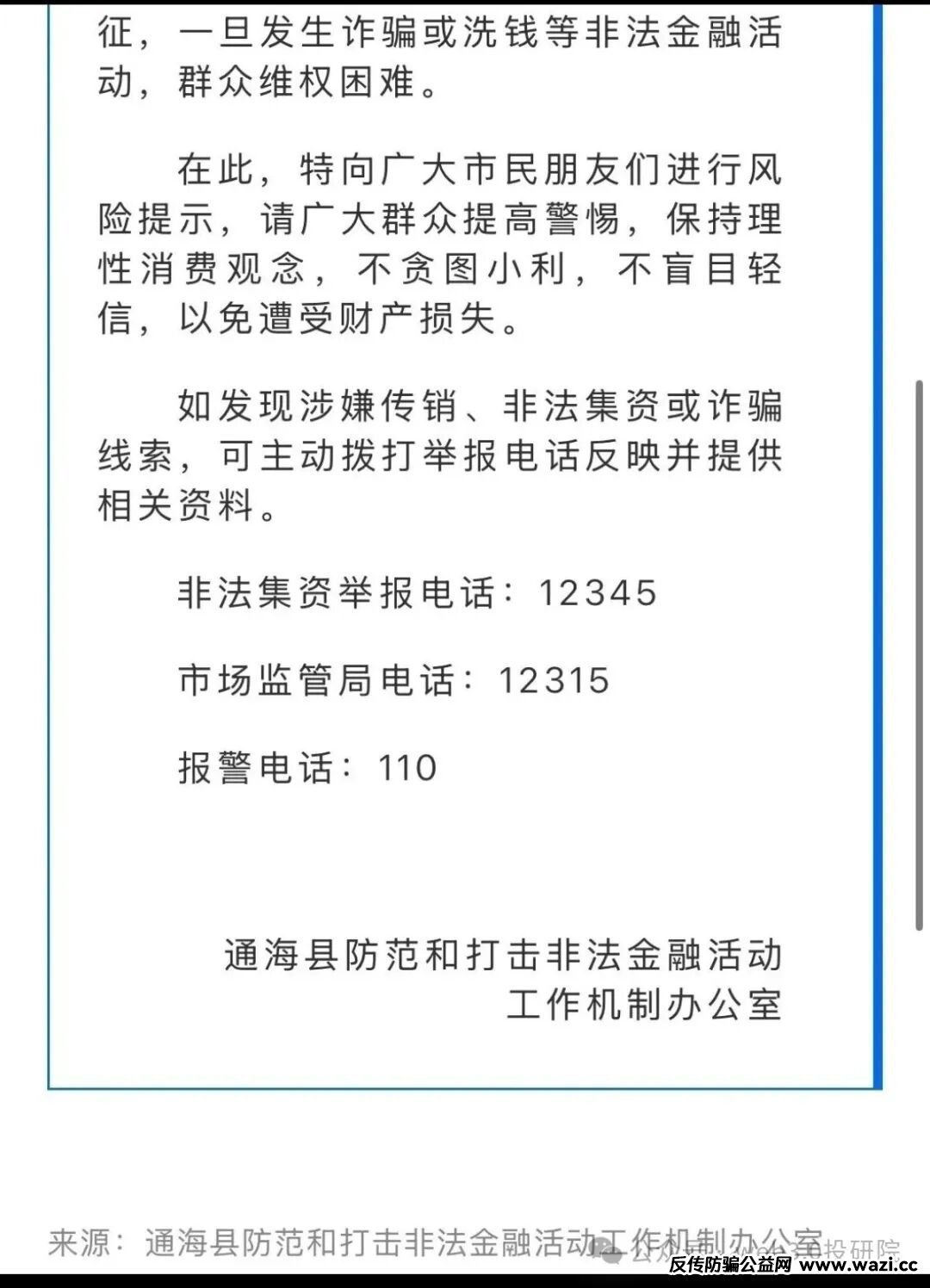 截至2025年11月,这个资金盘已经骗了超10亿元,涉案人员遍布全国,光湖南、云南、浙江就有上万人受害,但它为啥能撑这么久?核心就是4个“续命套路”,每个都精准拿捏了投资者的弱点。 套路1:“上市背景+高科技”双包装,把骗局做成“正规军”假象 资金盘想活久,包装必须“高大上”,维尔利把这招玩到了极致。首先是“碰瓷”上市公司,在APP里放真实维尔利的厂房照片、高管信息,甚至把上市公司的财报改一改就当成自己的业绩,让投资者觉得“有上市公司背书,肯定靠谱”。其次是炒作“高科技概念”,什么“基因抗衰”“AI医疗”“干细胞治疗”,全是普通人听不懂的术语,还伪造和意大利实验室的合作文件、三甲医院的合作协议,甚至PS“香港总部”的办公场景,营造“跨国高科技企业”的假象。 更绝的是,它还会“蹭政策风口”,把自己包装成“双碳战略受益企业”,宣称在做“生物天然气”“可持续航空燃料”项目,还伪造中标合同和项目进度,让投资者觉得“这是跟着国家政策赚钱,稳得很” 。但只要稍微核实就知道,国家药监局、卫健委查不到任何它的项目备案,所谓的“高科技项目”全是编的,连个实际办公地址都没有。 套路2:“小额返利+层级拉新”,用新血填旧坑,延缓资金链断裂 这是所有资金盘的核心续命逻辑,但维尔利把它优化得更“隐蔽”。首先是“高收益+阶梯利率”诱惑:投1万月息10%,5万月息12%,10万以上月息15%,宣称“年化400%,6个月回本,1年翻倍”,还搞“复投加息”,到期不提现能再上浮3%-5%,本质就是把投资者的钱锁在平台里。 然后是“传销式拉新”补现金流:推荐1人投资拿16%佣金,拉5人升级“团队长”拿团队总投资13%分成,拉20人当“区域代理”拿团队收益32%奖励。这种模式下,老会员为了拿佣金会疯狂拉亲友加入,新投资者的钱一部分用来给老会员发“分红”,一部分被骗子转移。数据显示,这个盘一年多发展了超10万会员,其中80%都是被亲友推荐加入的,新资金的持续流入,让本该撑不过3个月的资金盘,硬生生续了一年。 最狠的是“小额提现稳住人”:初期投入1万、2万的投资者,确实能按时拿到返利,甚至小额提现成功,这就让他们彻底信任,不仅自己追加投资,还拉更多人进来。湖南益阳有个李阿姨,一开始投1万赚了1200,后来直接抵押房产投了80万,结果现在想提现根本提不出来,客服直接失联。 套路3:“转移资金+更换收款渠道”,规避监管,延长收割时间 普通资金盘容易崩,是因为资金都走同一账户,容易被监管冻结,但维尔利的骗子早就想到了这一点。他们不设固定收款账户,而是让投资者把钱转到私人账户,或者通过虚拟货币钱包转账,而且短短一个月能换6个虚拟货币钱包,每个钱包被掏空后就丢弃,单个钱包累计流出资金逼近2800万美元。 这些资金最终通过东南亚的地下钱庄,转移到了缅北骗子的手里,而主犯一直在缅北遥控,国内监管很难追踪。更鸡贼的是,他们还会“打一枪换一个地方”,线下宣讲会从一二线城市转移到三四线城市和县城,线上从微信群转移到小众社交APP,躲避监管打击。截至2025年11月,已有湖南益阳、云南通海等多地政府发布风险提示,直指其“传销+非法集资”特征,但因为资金和主犯都在境外,一时难以彻底打掉,给了他们继续收割的时间。 套路4:“水军控场+恐吓威胁”,掩盖崩盘真相,收割最后一波 现在的维尔利,其实早就出现了资金链断裂的迹象,但骗子靠“舆论管控”硬生生撑着。每个投资者群里都有大量“水军”和“托”,天天晒虚假的“高额收益截图”“复投成功凭证”,制造“平台还在赚钱”的假象;只要有人质疑“提现难”,立刻被群管理禁言、踢出群,甚至被水军围攻“不懂感恩”“破坏赚钱机会”。 对于坚持要提现的投资者,骗子还有一套“恐吓话术”:要么说“你涉嫌套利,账户冻结”,要么要求签署“自愿放弃本金,仅领取部分收益”的协议,甚至威胁“你要是闹事,之前的返利也得退回来”。有用户试着提现500元测试,结果账户直接被锁,提示“恶意套取平台利益,资金永久冻结”。 但骗局终究是骗局,现在的维尔利,已经到了“崩盘倒计时”,这4个信号已经藏不住了: 第一,提现彻底崩盘:现在不管投多少,想提现必须拉3个新人,拉到了也只能提50%,剩下的强制复投;单笔提现超5万,直接扣50%“跨境结算手续费”,本质就是不让你提现。2025年10月以来,平台提现请求暴增300%,但成功提现的不足1%,资金链已经彻底断裂。 第二,资金转移完毕:通过6个虚拟货币钱包,超10亿元涉案资金已经全部转移到东南亚,骗子现在做的,就是用各种借口拖延时间,吸引最后一批“接盘侠”。 第三,监管打击升级:除了地方政府预警,湖南、浙江、广东等多地警方已经立案调查,定性为“组织、领导传销活动罪”和“非法集资罪”,正在联合境外警方追查资金和主犯,一旦抓捕归案,平台立刻就会倒闭。 第四,社群开始瓦解:越来越多的投资者发现被骗,维权群数量从几个增加到几十个,总人数超3万,大家抱团报警、提交证据,骗子的舆论管控已经失效,恐慌情绪正在蔓延。 很多人会问:“我投的钱还能要回来吗?” 说实话,很难。因为这类资金盘的钱一旦转移到境外,追赃挽损的难度极大,目前已报案的受害者中,能追回部分资金的不足5%。但哪怕只有一丝希望,也必须立刻行动:首先停止任何追加投资,哪怕骗子说“再加投5万就能解锁提