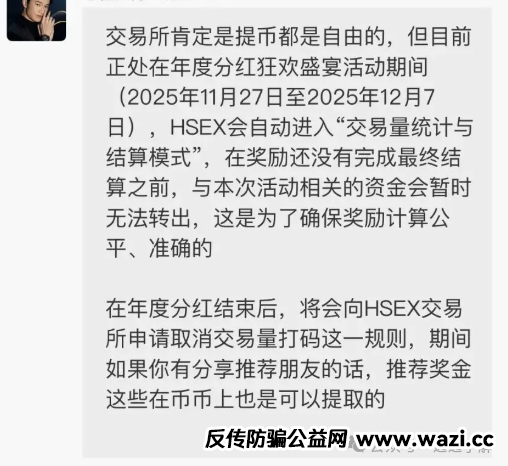 当提现手续费高达100%时,这意味着什么?你提现100元,要交100元手续费,到手为0;提现1万元,要交1万元手续费,到手还是0。这已经不是普通的投资亏损,而是赤裸裸的抢劫。 最近,所有HSEX煜志...