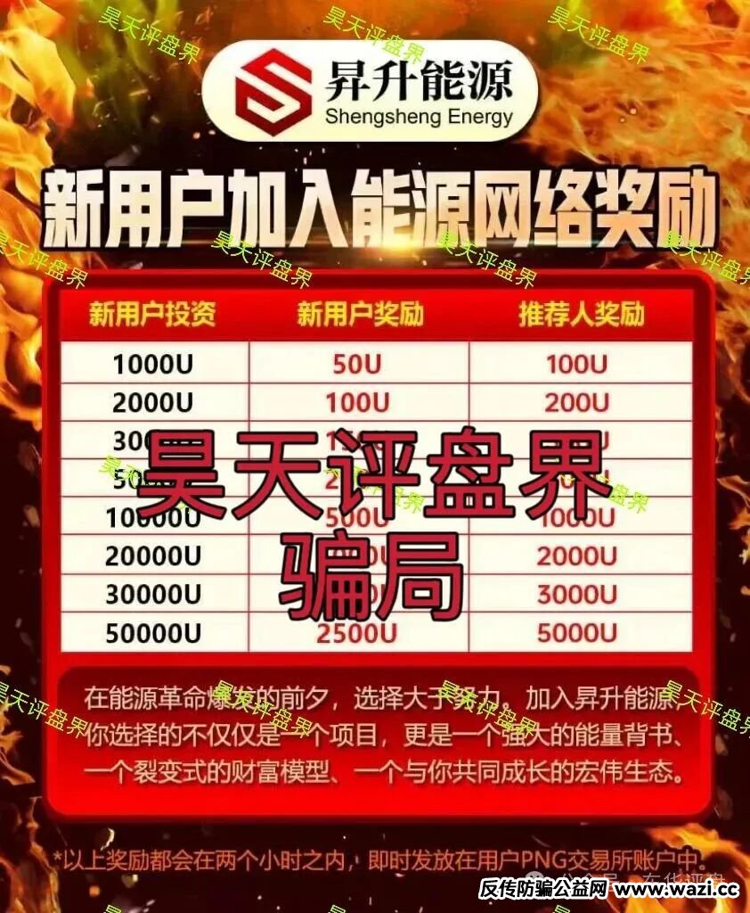 这个昇升能源是优利商务那伙人新开的盘子。还是老套路,用能源革命当噱头,投资送奖励,拉人头给返利。