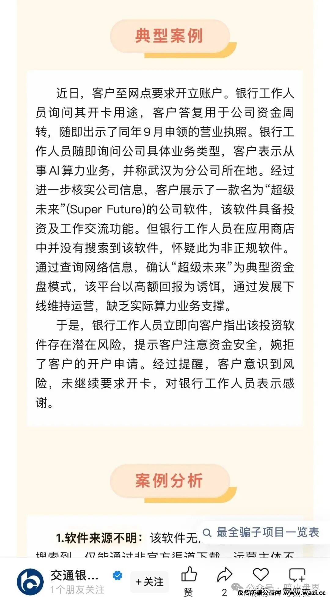 超级未来Super Future AI”投资,最近还被爆出有一个武汉的分公司,去银行办理柜台业务,结果被婉拒已经给出论证,涉嫌非法有投资属性为资金盘,这些窝点公司都是通过对公账户转移非法资金,主要都是从事和海外诈骗团伙牵扯USDT往来转账。