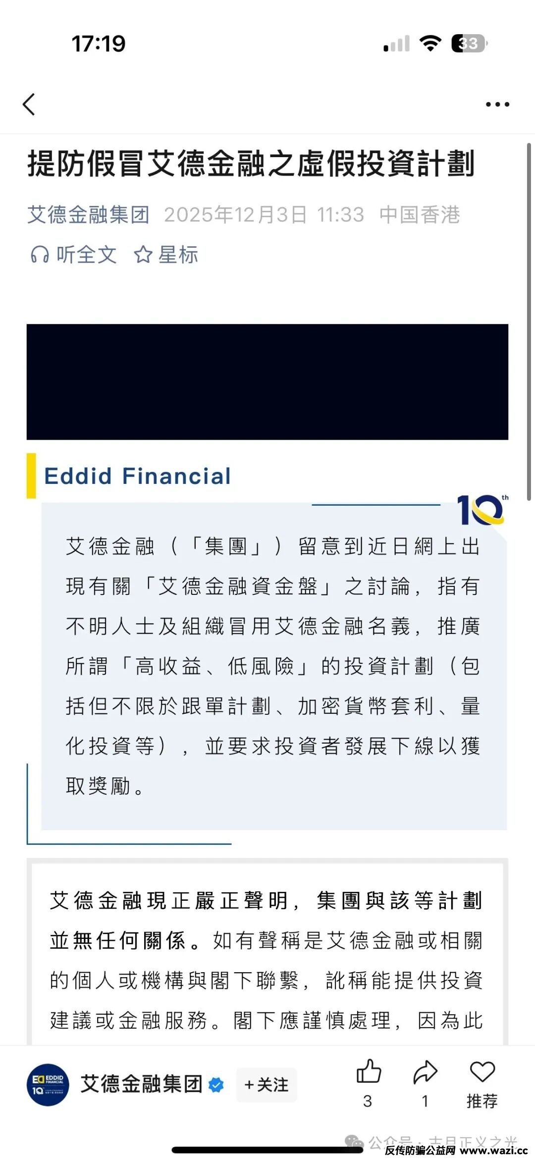 【艾德金融(EDDID)】套牌正规公司的资金盘骗局,正规公司发声明打假,即将收割,速度撤离…...