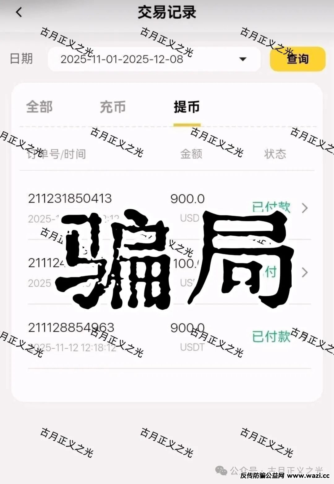 它们或打着“人工智能跟投”“区块链”“数字经济”等旗号,以高额回报、稳赚不赔为诱饵,实则行非法集资、网络传销、金融诈骗之实,严重扰乱经济秩序,侵害民众财产安全。我们对近期活跃及典型涉嫌违法违规的平台与项目进行了梳理与汇总。本公众号旨在揭示各种资金盘骗局的运作模式与欺诈本质。仟佰意BAX交易所资金盘骗局就是其中之一,有受害者反馈是之前那个叫中永国昌股票盘的诈骗团伙搞的平移重启盘,包装的导师这次叫穆欢,充值和提现都是u,属于典型的柬埔寨杀猪盘,大家要提高警惕,要崩盘跑路了…