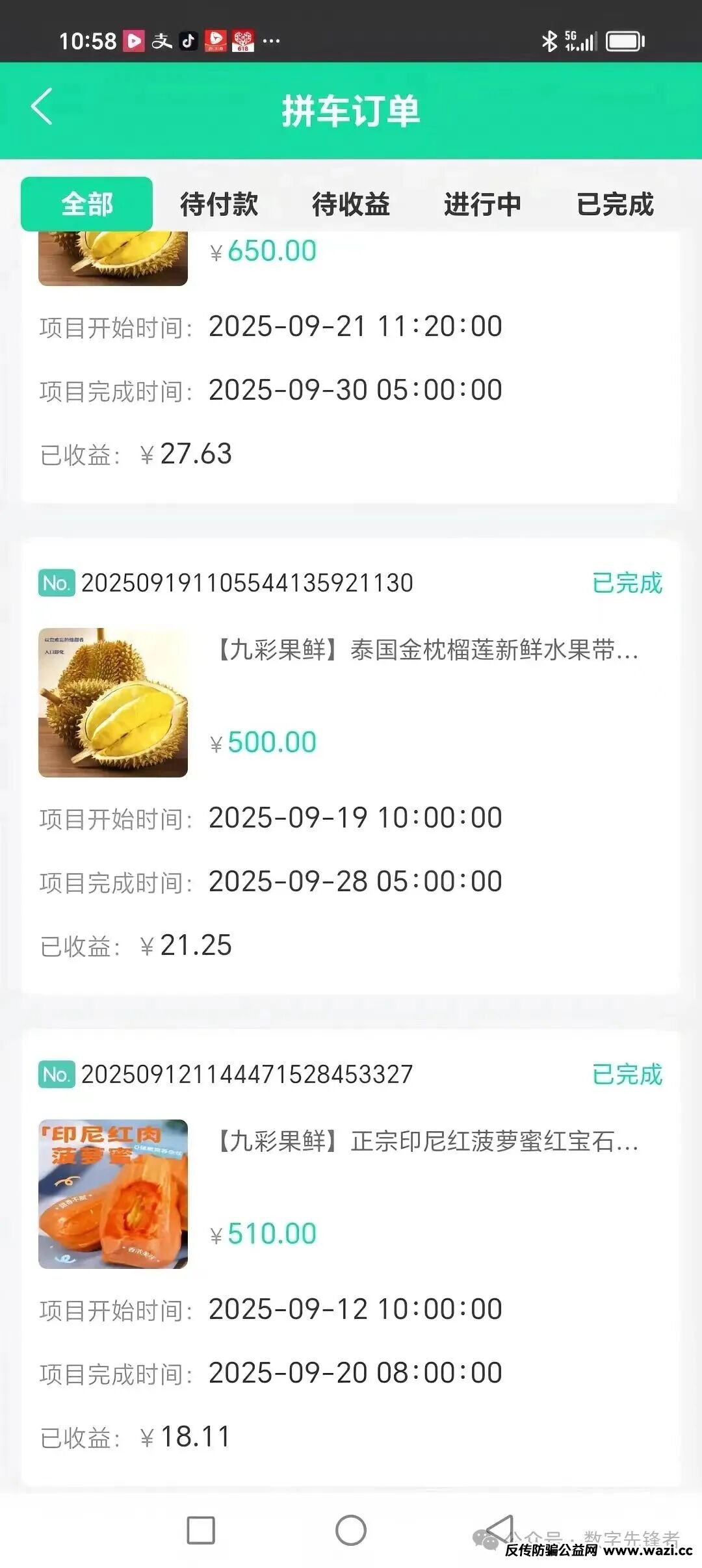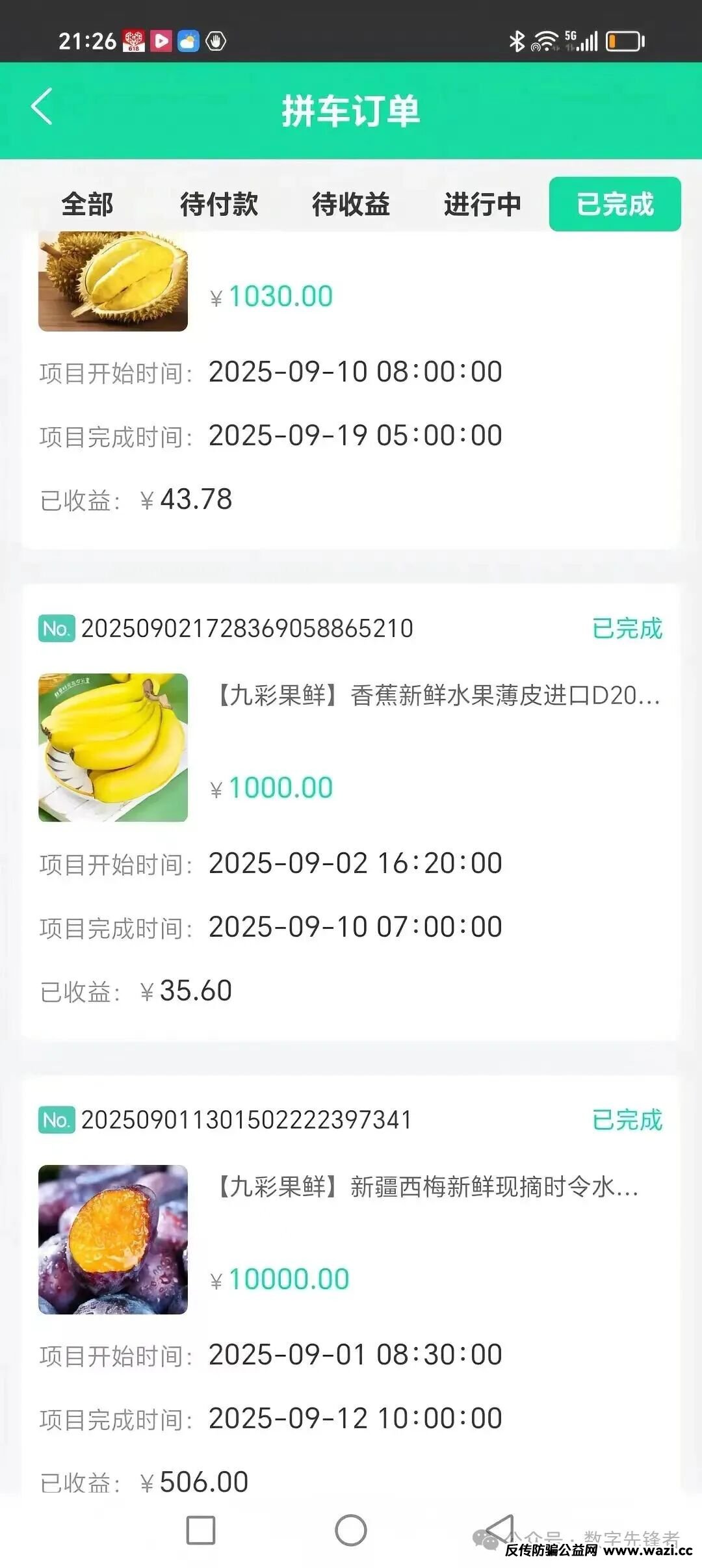 警惕“水果拼车”陷阱!【九彩果鲜】资金盘骗局曝光,高收益背后是血本无归的噩梦!