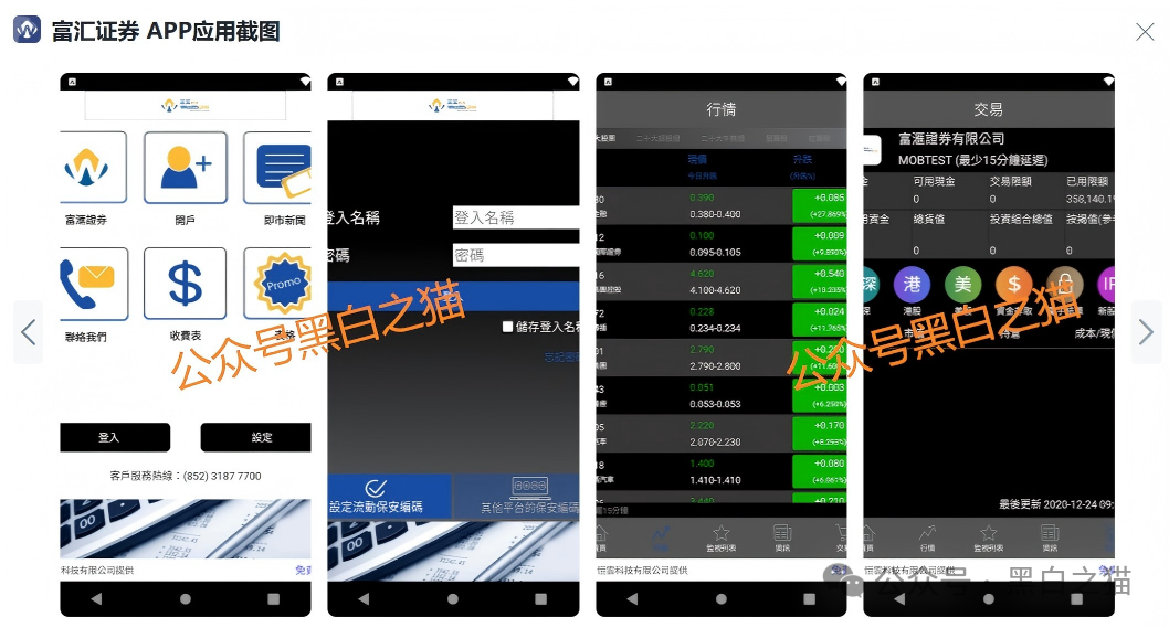 先说下正规的富汇证券有限公司,富汇证券是一家证券及期货服务商,成立2016年,在香港提供范围广泛的投资及金融服务,相关业务包括证券经纪服务及网上证券交易服务。
